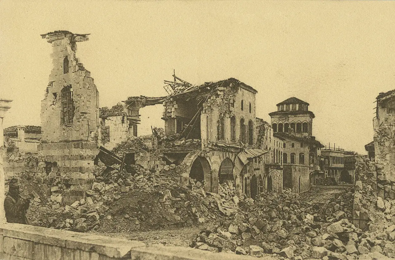 9 Şubat 1921’de Antep savunmasının sona ermesiyle şehrin hakimiyetini ele geçiren Fransızlar, bombardımanları sonucu yerle bir olan mekanların fotoğraflarını çekmişler.