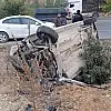 Şanlıurfa'da hafif ticari aracın devrilmesi sonucu meydana gelen kazada baba ve oğlu yaralandı.
