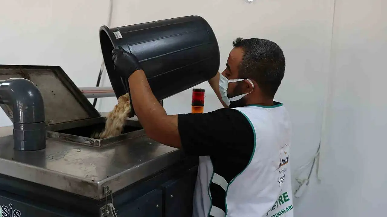 Şanlıurfa Büyükşehir Belediyesi, kent genelinde toplanan yemek atıkları, ekmek ve et ürünlerini işleyerek yüksek proteinli hayvan mamasına dönüştürüyor.