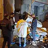 Öte yandan, patlama sonucunda evin duvarı yıkıldı. Mutfak eşyaları sokağa saçıldı.