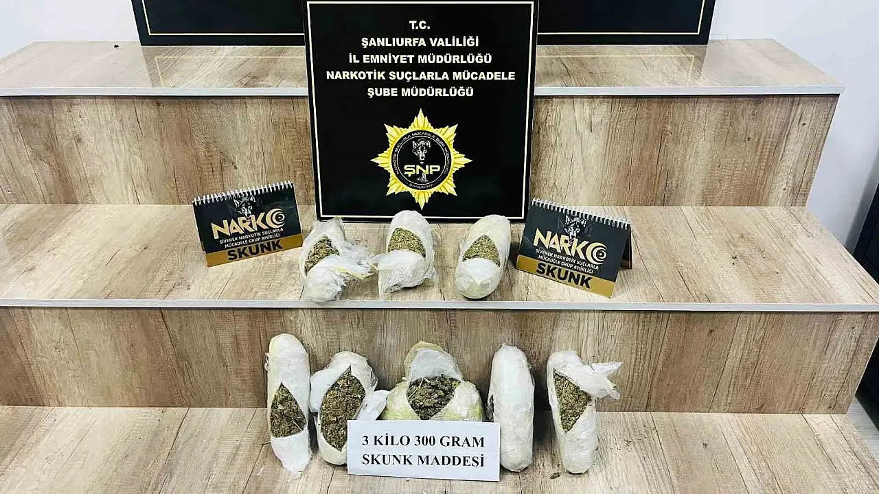 Şanlıurfa'da narkotik ekiplerince düzenlenen operasyonda 3 kilo 300 gram skunk ele geçirildi, 1 şüpheli tutuklandı.