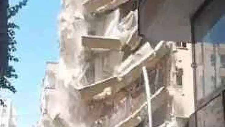 Şanlıurfa'da depremden hasar gören bina ıslık sesiyle yıkıldı