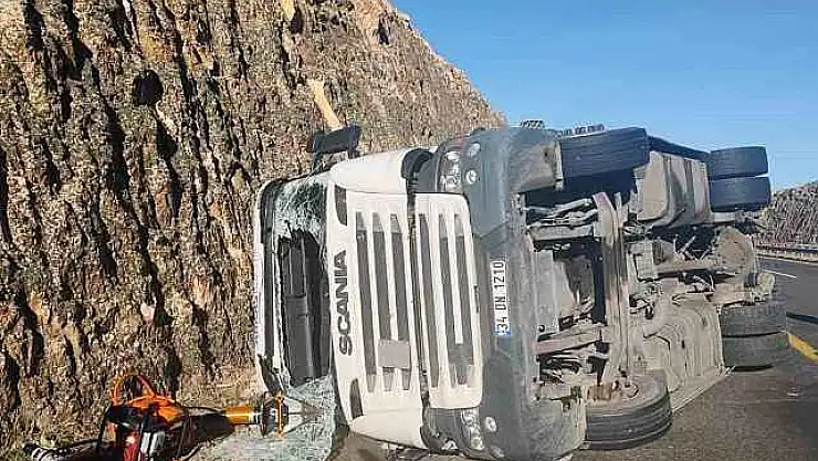 Şanlıurfa'da devrilen tırın sürücüsü hayatını kaybetti.