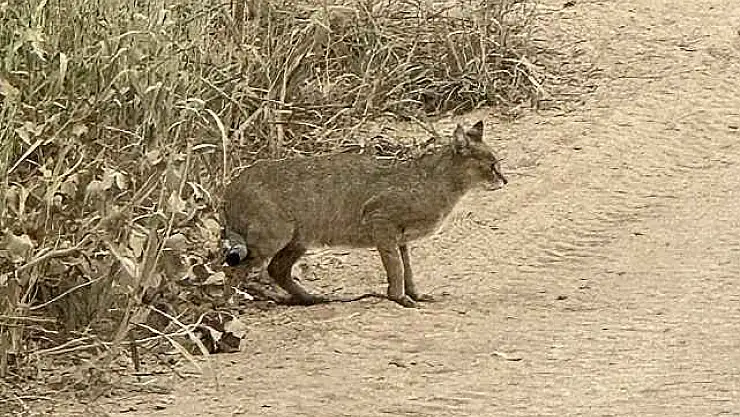 Şanlıurfa'nın Ceylanpınar ilçesinde nesli tükenme tehlikesi ile karşı karşıya olan vaşak ve yavruları görüntülendi.