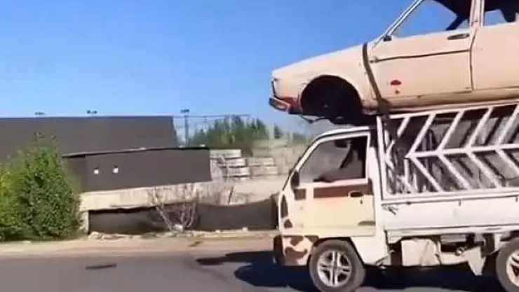 Şanlıurfa'da geçtiğimiz günlerde bir sürücü, kamyonetinin üzerinde başka bir aracı taşıyarak trafiği tehlikeye düşürürken, izleyenleri ise hayrete düşürdü.