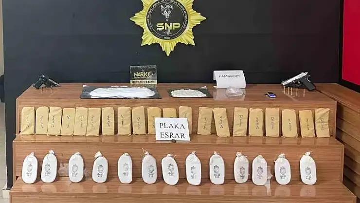 Şanlıurfa İl Emniyet Müdürlüğü Narkotik Suçlarla Mücadele Şube ekipleri, kent merkezinde belirlenen adrese operasyon düzenledi. Adreste yapılan aramada; 6 kilo 105 gram esrar, 1 kilo 98 gram sentetik uyuşturucu ile 2 ruhsatsız tabanca ve bir hassas terazi ele geçirildi. Gözaltına alınan 4 zanlı, işlemleri için emniyete götürüldü.