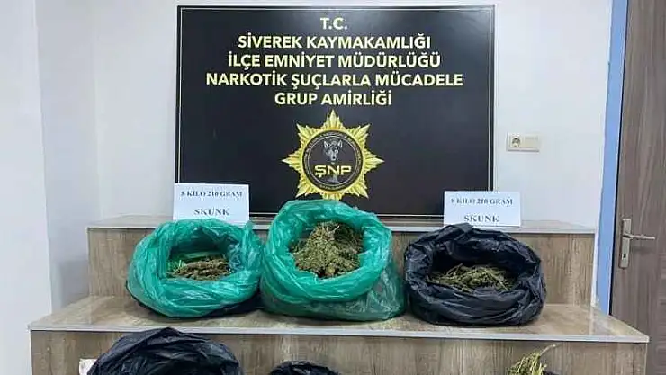 Şahısların kaldığı adreslerde yapılan aramada ise 8 kilo 250 gram skunk maddesi, 79 gram metamfetamin maddesi, 102 gram bonzai maddesi, 18 gram esrar maddesi, 13 adet uyuşturucu hap, 90 gram metamfetamin katkı maddesi, 2 adet hassas terazi, 4 adet ruhsatsız silah, 2 adet cep telefonu ile uyuşturucu ticaretinden elde edildiği değerlendirilen 11 bin TL para ele geçirildi.