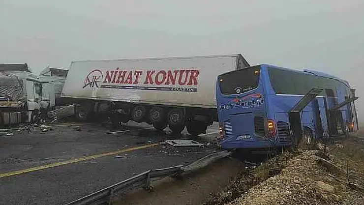 Şanlıurfa'da yolcu otobüsü ve 2 tırın karıştığı kazada ölü ve yaralılar olduğu bildirildi. Bölgeye sağlık, polis, Jandarma ve itfaiye ekipleri sevk edildi.Kaza, Şanlıurfa Gaziantep otoyol bağlantı noktasında meydana geldi. İddiaya göre, yoğun yağış ve sis nedeniyle yolcu otobüsü ve 2 tır çarpıştı. Kazanın ardından çevredeki vatandaşların ihbarı üzerine olay yerine sağlık, polis, jandarma ve itfaiye ekipleri sevk edildi.Kazada ölü ve yaraların olduğu bildirildi. İHA