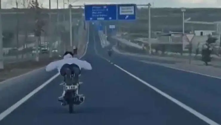 Şanlıurfa Şehirler Arası Otobüs Terminali ile Evren Sanayi Sitesini birbirine bağlayan Kuzey-Batı çevre yolunda ilerleyen 63 AEC 196 plakalı motosikletin sürücüsü tehlikeli hareketler yaptı. Motosikletinin üzerine yüzüstü uzanarak ilerleyen sürücü, diğer sürücülere zor anlar yaşattı. Arkasındaki araçlara yol vermeyen motosiklet sürücüsü tepkilere neden oldu. Sürücülerin tepki gösterdiği motosikletlinin tehlikeli yolculuğu, cep telefonuyla da görüntülendi. Bir süre bu şekilde ilerleyen motosiklet sürücüsü daha sonra gözden kayboldu.