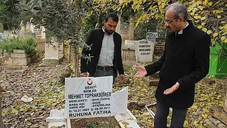 Şanlıurfa'da kimliği belirsiz kişi veya kişiler tarafından şehit mezarının tahrip edilmesi tepkilere neden oldu.