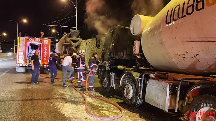 Malatya'da seyir halindeyken alev alan beton mikseri itfaiye tarafından söndürüldü.