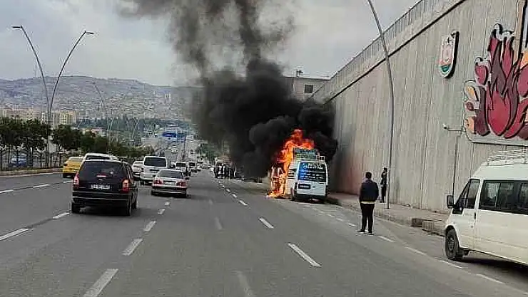 Seyir Halindeki Minibüs Alev Topuna Döndü