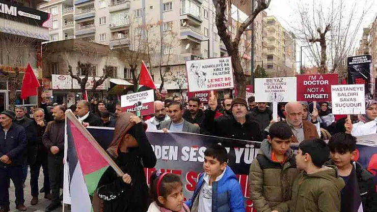Siirt'te, hekimlerinde katılımıyla şehitler ve İsrail saldırısı altındaki Filistin halkı için yürüyüş düzenlendi.