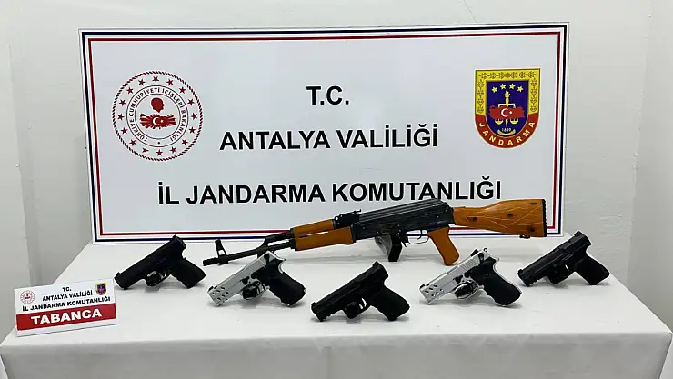 Antalya İl Jandarma Komutanlığınca yürütülen çalışmalar sonucu Antalya Cumhuriyet Başsavcılığı talimatları doğrultusunda; Kepez ilçesinde ruhsatsız silah kaçakçılığı ile mücadele kapsamında; M.S.Ç. ve M.Ç. isimli şüpheli şahısların ikametinde yapılan operasyon sonucunda; 5 Adet Ruhsatsız 9mm Tabanca, 1 Adet Av Tüfeği, 5 Adet Tabanca Şarjörü ele geçirildi.