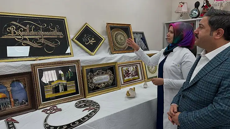 Sergiyi gezen Sincik kaymakamı Yunus emre Bozkurtoğlu, usta öğretici ve kursiyerlerle sohbet edip, sergilenen ürünler hakkında bilgi aldı.