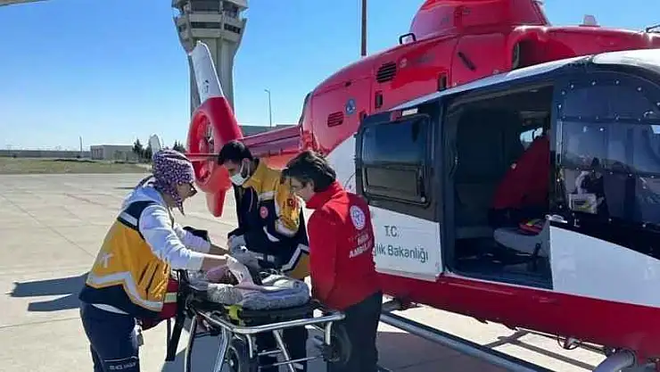 Şırnak'ın Silopi ilçesinde solunum enfeksiyonu şikayetiyle hastaneye kaldırılan 2 yaşındaki Emine A. isimli bebek Sağlık Bakanlığına ait ambulans helikopterle Elazığ'a sevk edildi.