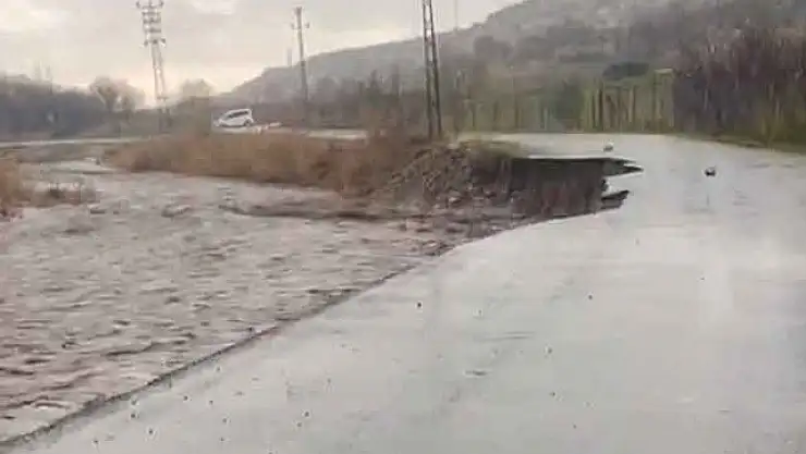 Şırnak'ın Silopi ilçesinde etkili olan sağanak yağışla birlikte dereler taştı, asfalt yolun bir kısmı çöktü.