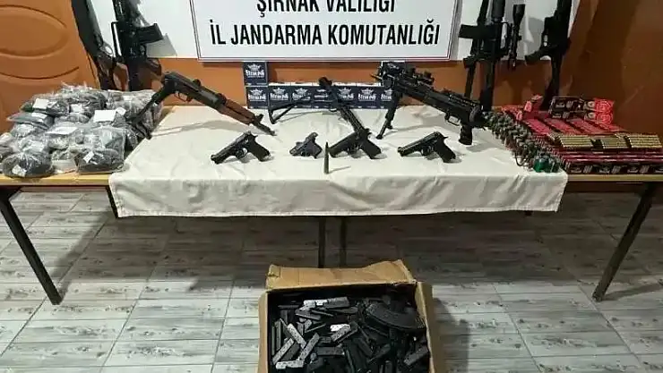 Edinilen bilgiye göre, 4-17 Nisan tarihlerinde İdil ve Cizre Cumhuriyet Başsavcılığı ve Şırnak İl Jandarma Komutanlığı Kaçakçılık ve Organize Suçlarla Mücadele Şube Müdürlüğünce yapılan çalışmalar sonucunda yasa dışı silah imalatı ve silah kaçakçılığı yapan organize suç örgütlerine yönelik operasyonlar düzenlendi. Operasyonlarda 1 adet silah imalathanesi, 22 adet ruhsatsız av tüfeği, 136 adet av tüfeği mühimmatı, 1 adet uçaksavar mermisi, 2 adet Kalaşnikov piyade tüfeği, 6 adet Kalaşnikov piyade tüfeği şarjörü, 40 adet Kalaşnikov piyade tüfeği mühimmatı, 1 adet makineli tabanca, 2 adet tabanca, 4 adet kurusıkı tabanca, 4 bin 200 adet tabanca mühimmatı, 122 adet kurusıkı tabanca mühimmatı, bin 16 adet tabanca şarjörü, 218 adet tabanca kabzası, 16 adet tabanca yayı, 30 adet kabza pimi, 70 adet silah yapımında kullanılan malzeme ele geçirildi. Operasyonda suç liderinin de aralarında bulunduğu 7 kişi gözaltına alındı.