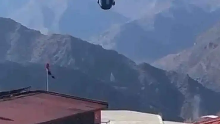 Şırnak'ın Beytüşşebap ilçesinde helikopter faaliyetlerini bitiren pilot, son sorti de gösteri yaparak Mehmetçiği selamladı.