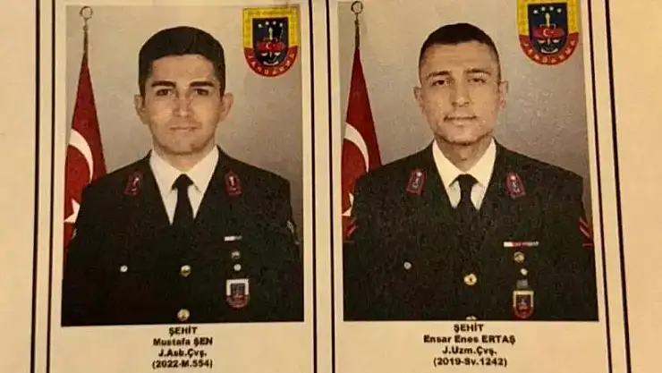 Şırnak’ta askeri aracın devrilmesi sonucu şehit olan Antalya nüfusuna kayıtlı Jandarma Astsubay Çavuş Mustafa Şen (23) ve Hatay nüfusuna kayıtlı Jandarma Uzman Çavuş Ensar Enes Ertaş (27) için 23. Piyade Tümen Komutanlığı’nda tören düzenlendi. Ambulansla tören alanına getirilen şehitlerin Türk bayrağına sarılı naaşları, katafalka konuldu, saygı duruşunda bulunuldu, şehitlerin öz geçmişleri okundu.