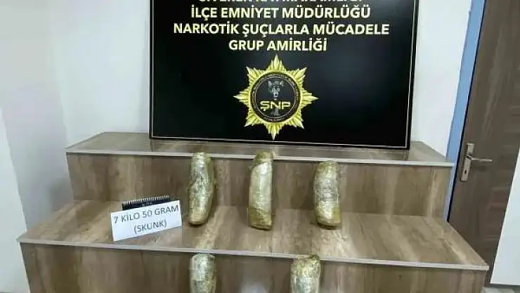 Şanlıurfa'nın Siverek ilçesinde düzenlenen operasyonda, bir araçta yapılan aramada 7 kilo 50 gram skunk uyuşturucu maddesi ele geçirildi.