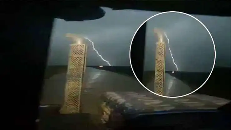 Şanlıurfa'nın Siverek ilçesinde yıldırımın yere düşme anı cep telefonu kamerasına yansıdı.