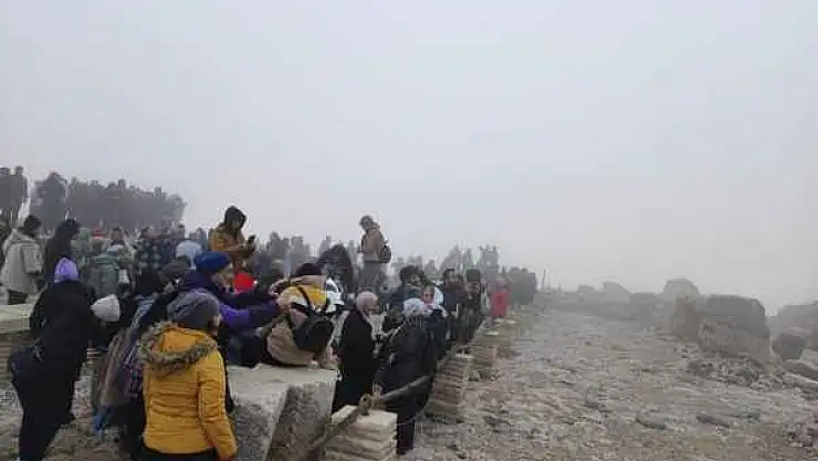 Adıyaman'ın Kahta ilçesinde, Dünyanın 8. Harikası Nemrut Dağı'na yerli ve yabancı turistler soğuk havaya aldırış etmeden 2206 metre yüksekliğe tırmandılar.