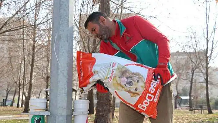 Şanlıurfa'nın Karaköprü Belediyesi sokakta yaşayan ve kış aylarında yiyecek bulmakta zorlanan hayvanlar için parklara geri dönüştürülen borulardan yapılmış kaplar yerleştirirken bu kapları mama ve su doldurarak sokaktaki canların ihtiyaçlarını gideriyor.