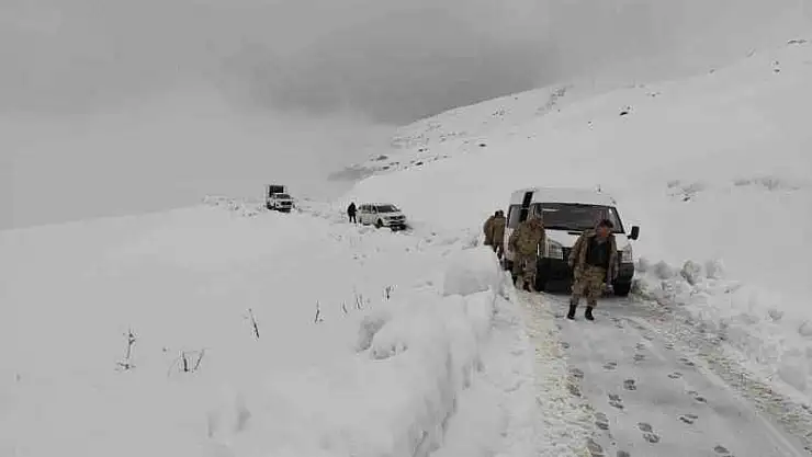 Batman'ın Sason ilçesinde Sultan Dağı'nda yoğun kar nedeniyle kara saplanan köylülere ait minibüs, Köylere Hizmet Götürme Birliği ve jandarma ekipleri tarafından kurtarıldı.