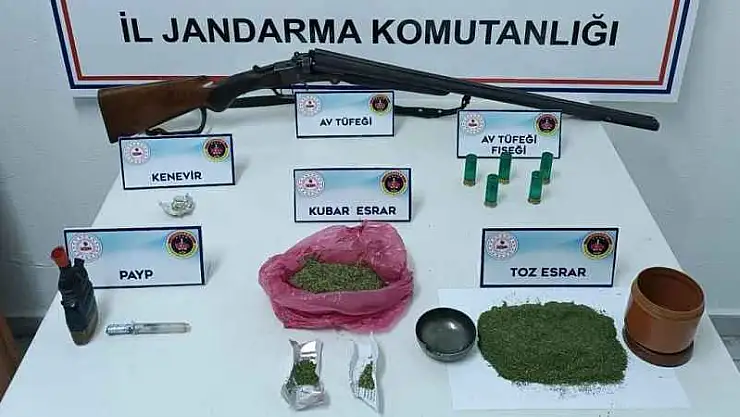 Edinilen bilgilere göre; Kahramanmaraş İl Jandarma Komutanlığı, Afşin İlçe Jandarma Komutanlığı ekiplerince yapılan çalışmalar neticesinde, uyuşturucu madde kullanıldığı bilgisinin alınması üzerine, park halinde duran ve içerisinde M.Ç, H.K, A.A isimli şahısların bulunduğu araçta yapılan aramada; 69.50 gr toz esrar olduğu değerlendirilen uyuşturucu madde ele geçirildi. M.Ç isimli şahsın evinde yapılan aramada, 1 Adet Ruhsatsız Çift Kırma Av Tüfeği, Tüfeğe ait 5 adet fişek, 56 adet kenevir tohumu, 2 adet uyuşturucu madde içmekte kullanılan payp isimli aparat ve 41 gr kubar esrar olduğu değerlendirilen uyuşturucu madde, A.A isimli şahsın evinde yapılan aramada 1 gr kubar esrar olduğu değerlendirilen uyuşturucu madde, H.K isimli şahsın evinde yapılan aramada 1 gr kubar esrar olduğu değerlendirilen uyuşturucu madde ele geçirildi.