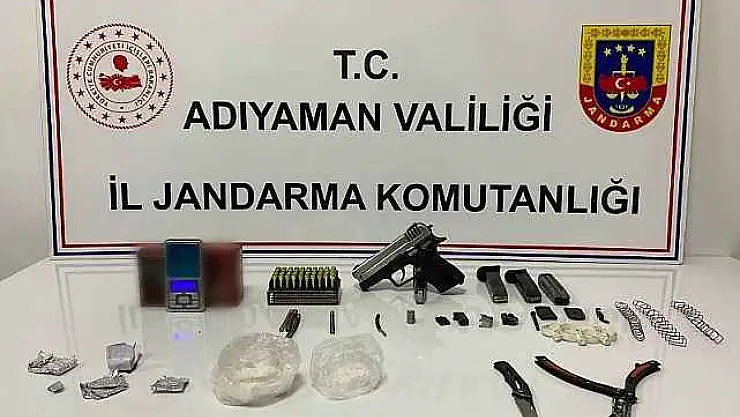 Adıyaman'da jandarma ekiplerinin takibe aldığı şahsın aracında yapılan aramada uyuşturucu ve evinde ise silah ele geçirildi.