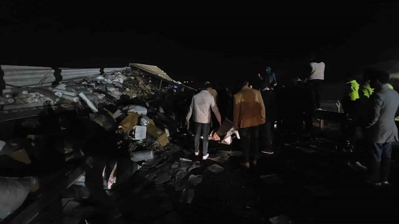 Tekstil malzemesi yüklü tır devrildi: Yol trafiğe kapandı
