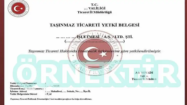 - Ticaret İl Müdürlüğü'nden İkinci El Taşınmaz Ticareti Yetki Belgesi düzenlene duyurusu