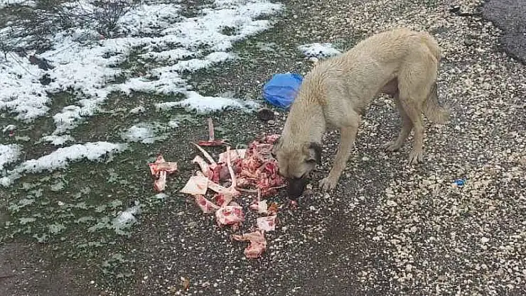 Adıyaman'ın Gölbaşı İlçe Emniyet Müdürlüğü Trafik Denetleme Büro Amirliği ekipleri soğuk hava ve yoğun kar yağışında yiyecek sıkıntısı çeken sokak hayvanlarını besledi.