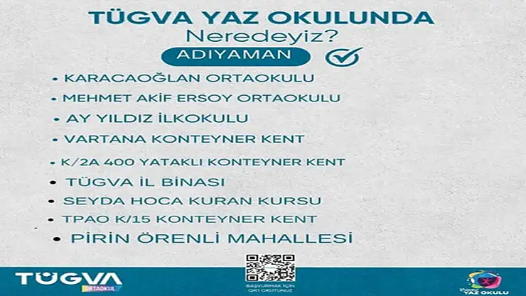 TÜGVA Adıyaman Yaz Okulu Kursları başlıyor