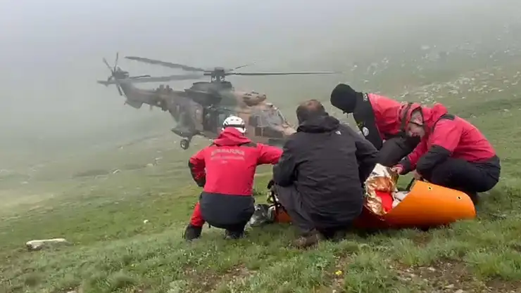 Eskişehir'den havalanıp Rize'ye giderken düşen jet uçakta hayatını kaybeden pilotun cenazesi ve yaralanan yolcu, helikopterle bulundukları yerden alınarak Erzurum'a götürüldü.