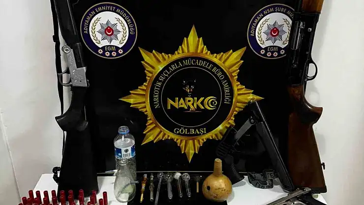 Adıyaman'ın Gölbaşı ilçesinde düzenlenen operasyonda uyuşturucu madde, silah ve fişek ele geçirildi, 3 kişi gözaltına alındı.