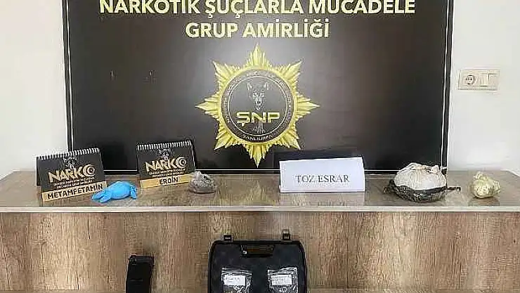 Siverek İlçe Emniyet Müdürlüğü, Narkotik Suçlarla Mücadele Grup Amirliği Ekiplerince uyuşturucu ile mücadeleye yönelik yapılan çalışmalarda, 1 kilo 113 gram toz esrar, 110 gram Metamfetamin uyuşturucu 138 gram eroin ile birlikte bir ruhsatsız tabanca ile bu silaha ait mermiler ele geçirildi.