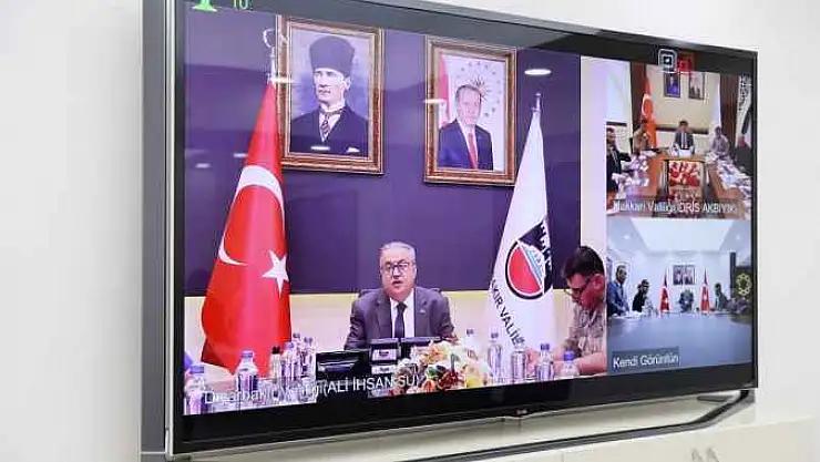 Mardin Valisi Mahmut Demirtaş, Metamfetamin ile Mücadele Eylem Planı kapsamında video konferans (VKS) aracılığıyla Valilik Dara Toplantı Salonunda düzenlenen bölge değerlendirme toplantısına katıldı.