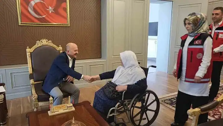 Adıyaman'da Vali ile görüşmek isteyen engelli kadın evinden özel araç ile alınarak makama getirildi.