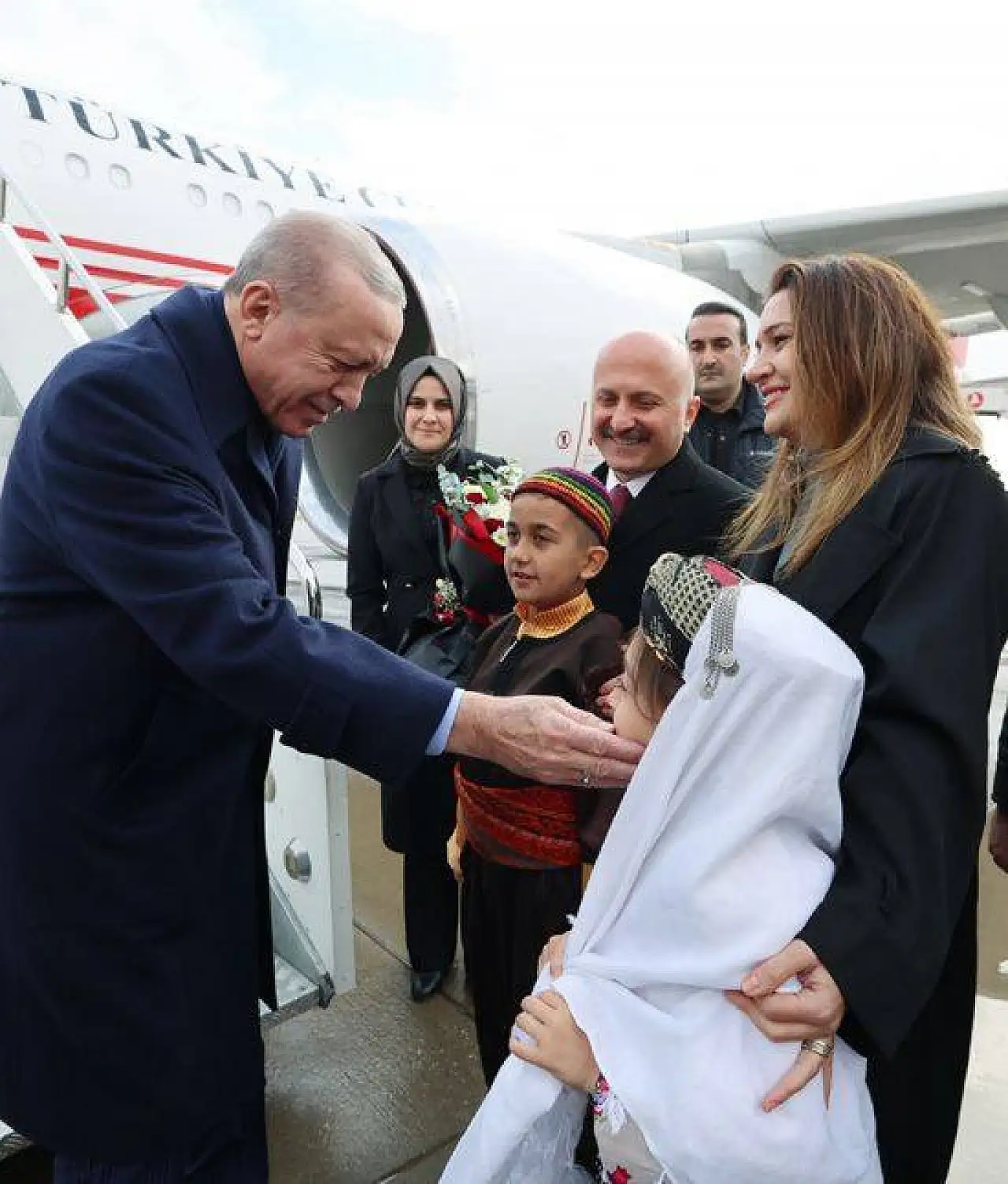 350 Bininci konutun anahtar teslim törenine katılmak üzere Adıyaman'a gelen Cumhurbaşkanı Recep Tayyip Erdoğan'ı Adıyaman Havalimanı'nda Adıyaman Valisi Dr. Osman Varol ve eşi Funda Varol karşıladı.