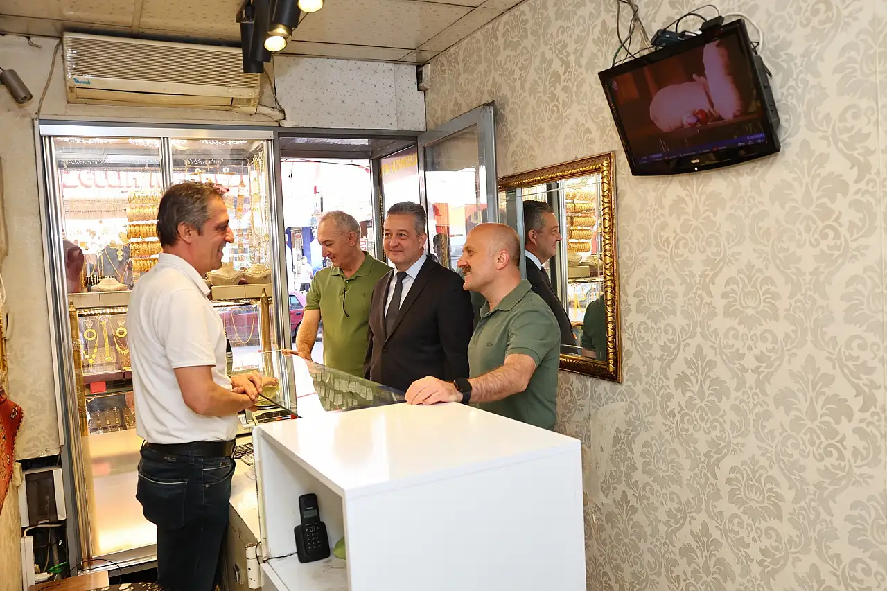 Adıyaman Valisi Dr. Osman Varol İl Jandarma Komutanı Jandarma Albay Fahri Semiz ve İl Emniyet Müdürü Arzum Nazman ile esnafları ziyaret etti.