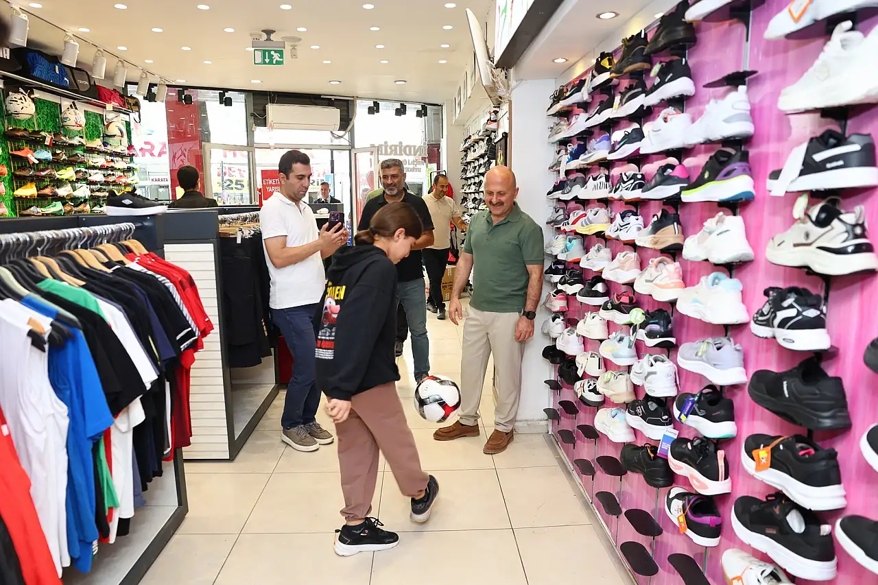 Ziyaret kapsamında spor mağazasında karşılaştığı kız çocuğuyla sohbet eden çocukla sohbet eden Vali Varol, kız çocuğunun Futbol topuyla yaptığı kısa gösteriyi hayranlıkla izleyip tebrik etti.