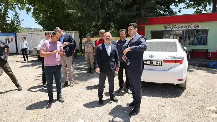 Gölbaşı ilçesini ziyaret eden Adıyaman Valisi Dr. Osman Varol, ilçe kaymakamı Tarık Buğra Seyhan ili birlikte Gölbaşı Kaymakamlığı hizmet binası inşaat alanında incelemelerde bulundu.
