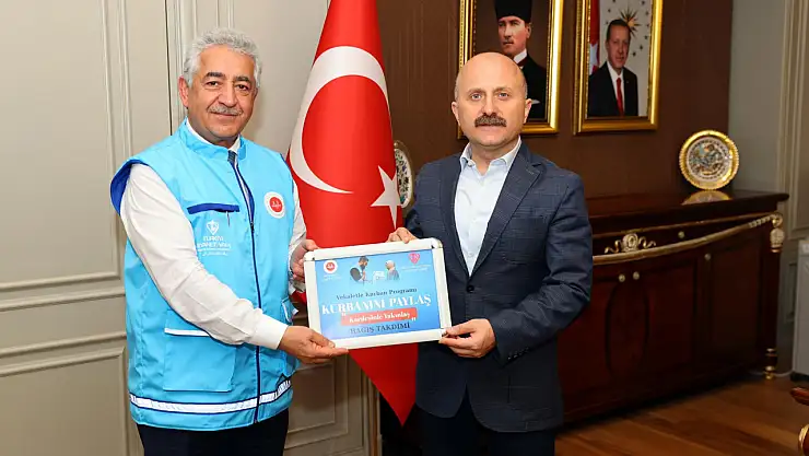 Adıyaman Valisi Dr. Osman Varol, Diyanet İşleri Başkanlığı’nın Türkiye Diyanet Vakfı aracılığıyla dünya genelindeki muhtaç insanlara el uzatmak amacıyla başlattığı “Kurbanını Paylaş Kardeşinle Yakınlaş" kampanyası kapsamında TDV’ye kurban bağışı yaparak bağış belgesini İl Müftüsü Mevlüt Haliloğlu'ndan aldı.