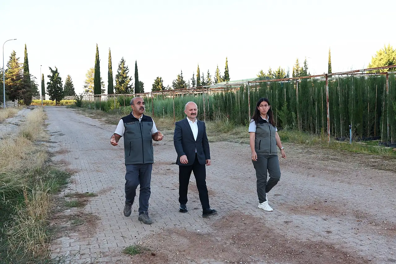 Hasancık Orman Fidanlığında geleceğe nefes olan çalışmaları yerinde inceleyen Vali Varol, fidanlığı gezerek fidan üretim süreçleri, yıllık üretim kapasitesi, yetiştirilen türler ve fidanlığın bölge ekonomisine katkısı hakkında Fidanlık Müdürü Ahmet Fatih Ünal’dan bilgiler alıp gösterdikleri gayret ve özverili çalışmalar için personele teşekkür ederek başarılar diledi.