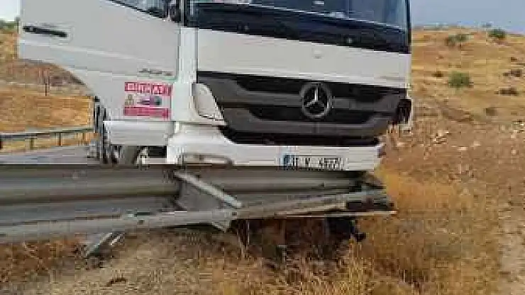 Siirt-Şirvan karayolunda virajı alamayan tır sürücüsü şarampolde mahsur kaldı. Kazada sürücü yara almazken tır da maddi hasar meydana geldi.