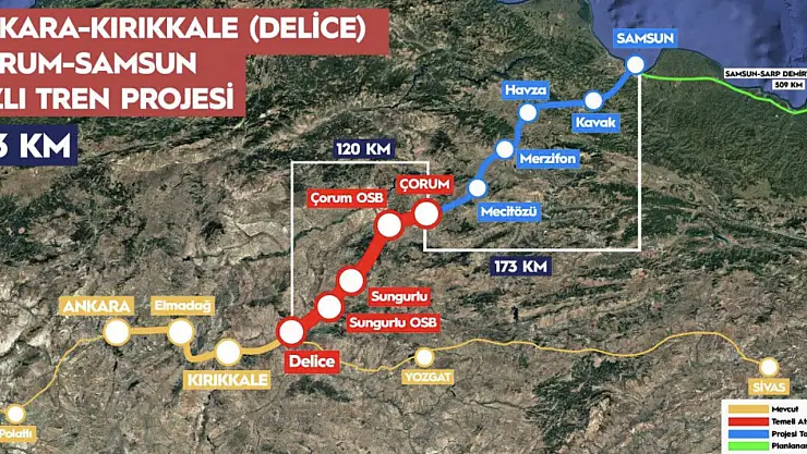 Ankara-Kırıkkale-Çorum-Samsun Hızlı Demiryolu Projesi kapsamında Delice-Çorum etabının temelinin cumartesi günü atılacağını açıkladı. 120 kilometrelik bu etap, projenin ilk inşa edilecek bölümü olacak.