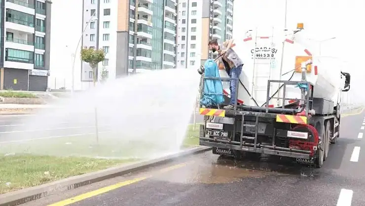 Diyarbakır Büyükşehir Belediyesi, hava sıcaklığının mevsim normallerinin üzerinde seyretmesi üzerine yeşil alanları korumak ve bitkilerin gelişimlerini sağlıklı şekilde sağlamak amacıyla sulama çalışması başlattı.