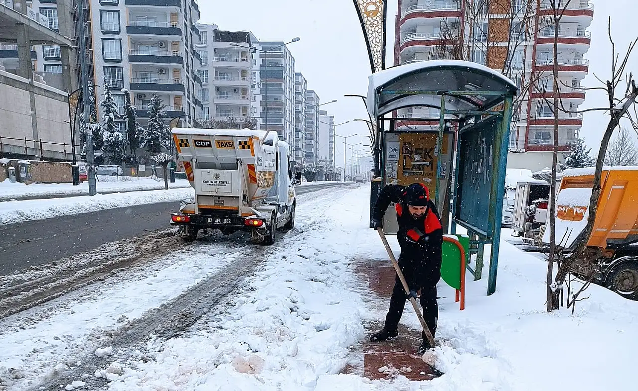 Yoğun kar yağışına karşı Kahta Belediyesi ekipleri sahada